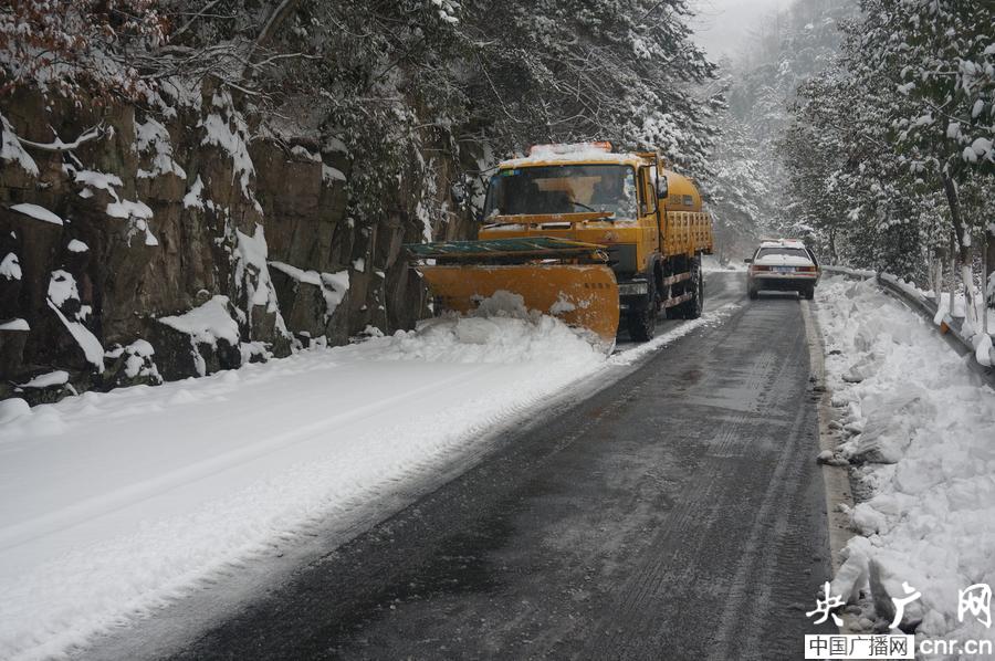 浙江淳安山區(qū)公路路面積雪超10厘米 20多臺除雪設備緊急出動(央廣網(wǎng)發(fā) 童可清攝)