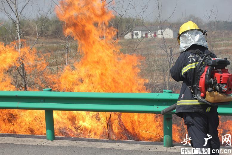 高速路邊50余畝荒地起火 消防成功處置化險(xiǎn)為夷(央廣網(wǎng)發(fā) 鮑陳 攝)