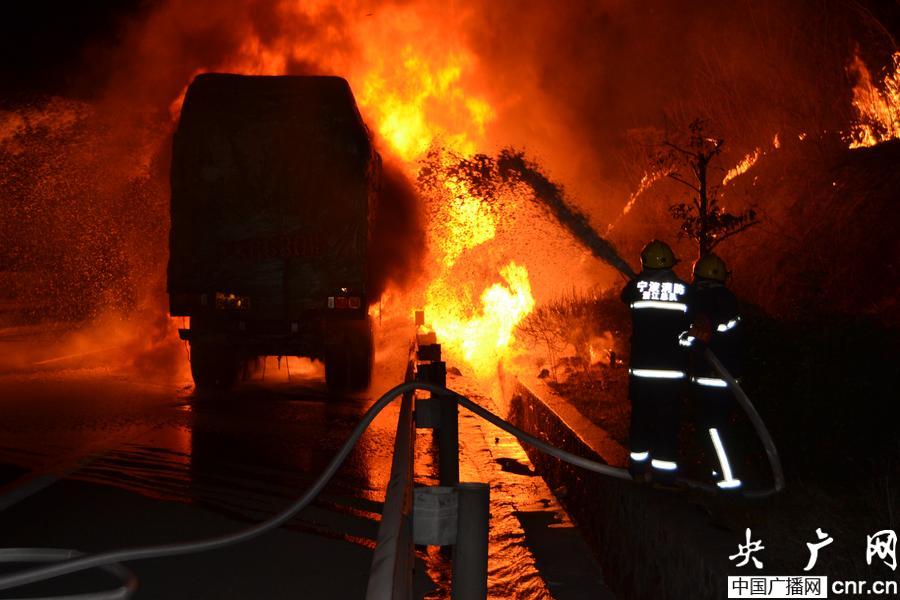 浙江奉化:高速貨車起火 30噸塑料顆粒被燒大半 (央廣網(wǎng)記者 曹美麗 攝)