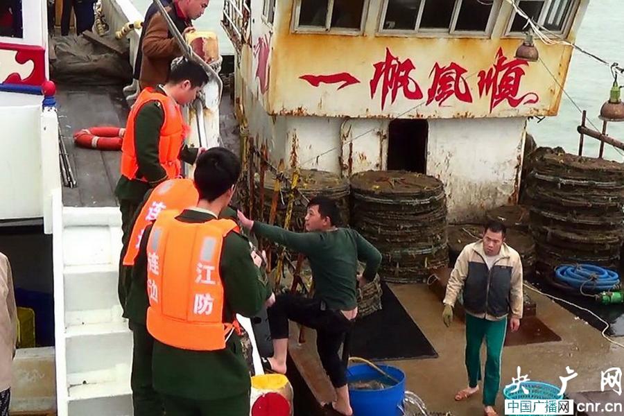 由于當(dāng)時(shí)海上風(fēng)力達(dá)8級(jí),浪高達(dá)3米,加上該海域海況復(fù)雜,救援船多次靠幫均被海浪打散。見此情況,邊防官兵與救援漁民采取拋撒纜繩、再固定拖拽的方式,多次努力之下才與遇險(xiǎn)漁船搭靠成功。邊防官兵首先將10名遇險(xiǎn)船員安全轉(zhuǎn)移到臺(tái)輪“順利泰”號(hào),隨后將船上滿載的海鮮漁貨搬運(yùn)至其余救援船只。在減輕船體負(fù)重后,他們抽調(diào)3臺(tái)大馬力水泵將船艙積水迅速抽出。經(jīng)過一個(gè)多小時(shí)的救援,遇險(xiǎn)漁船險(xiǎn)情被成功排除,船員及魚貨均被安全轉(zhuǎn)移上岸。隨后,遇險(xiǎn)船只被救援人員拖回連江縣黃岐中心漁港。