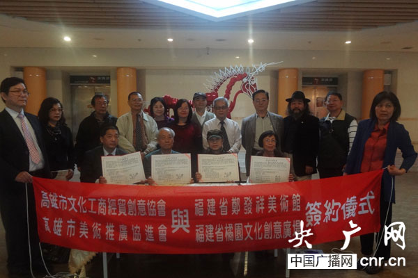 央廣網(wǎng)北京3月25日消息(記者 于聞)以“兩岸文化,創(chuàng)意融圓”為主題的兩岸文化聯(lián)盟,于2014年3月21日至25日分別在臺北、新竹、高雄、臺南等地舉行了聯(lián)合簽約儀式。