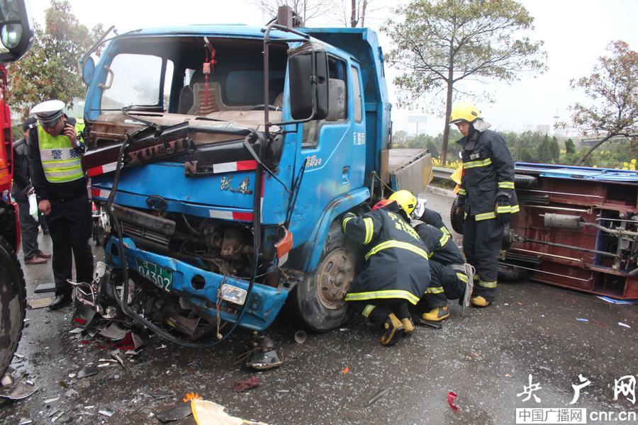 寧波杭州灣新區(qū)今早發(fā)生四車相撞 一人被卷入車底(央廣網(wǎng)發(fā) 王磊 攝)