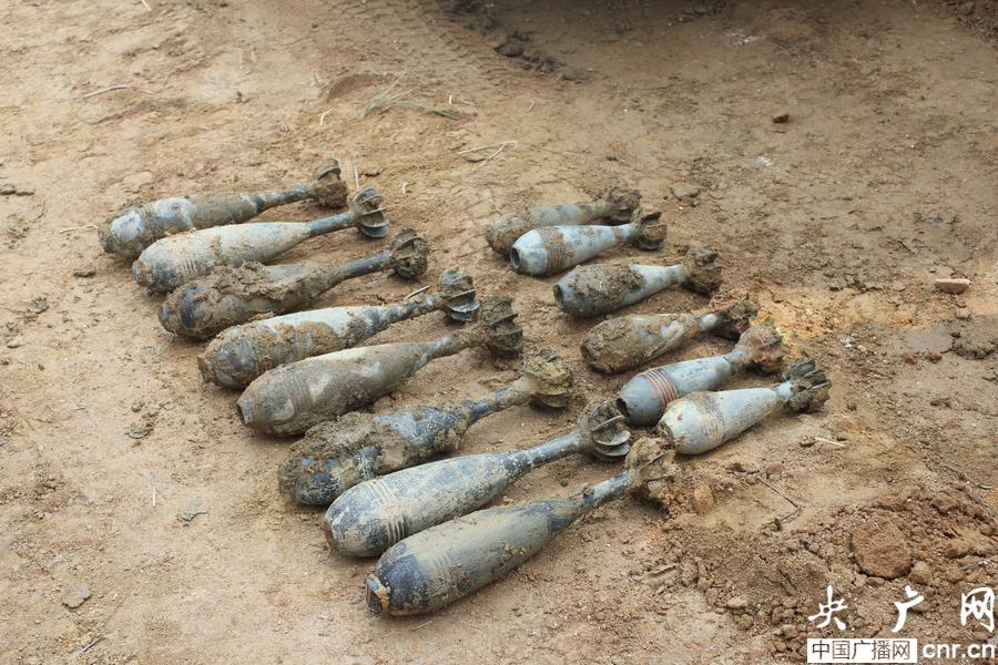近日,云南文山邊防支隊(duì)猛洞邊防派出所轄區(qū),連續(xù)兩天驚現(xiàn)兩批戰(zhàn)時(shí)遺留炮彈(攝影徐燕斌)
