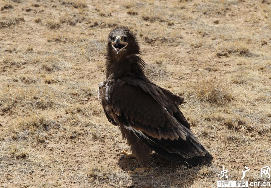 受傷后不能飛翔的草原雕(央廣網(wǎng)發(fā) 孫智廣攝影)