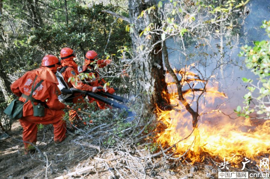 災(zāi)情發(fā)生后,香格里拉縣和建塘鎮(zhèn)啟動了應(yīng)急預(yù)案。由于火災(zāi)現(xiàn)場林相為高山松、高山櫟混交林,且山高物燥,風勢強大,撲救工作困難較大。武警迪慶州森林大隊根據(jù)迪慶州森林防火指揮命令,迅速出動官兵第一時間趕赴火場一線撲救。部隊到達火災(zāi)現(xiàn)場后,經(jīng)現(xiàn)地勘察,火場海拔3500米,火勢為夾山火,坡度約60度。全體參戰(zhàn)官兵克服高寒缺氧、陡坡密林艱難行軍等困難,采取“一點突破”、“兩翼推進”等手段展開撲救。