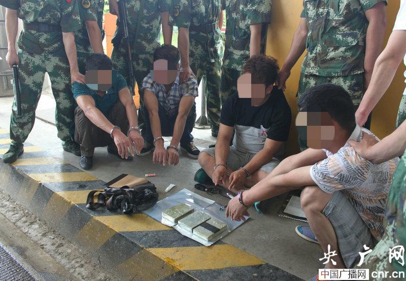 4月24日下午16時(shí),官兵在南友高速崇左收費(fèi)站入口處成功攔截一輛涉嫌販毒的廣東牌照本田轎車,當(dāng)場(chǎng)從車內(nèi)一黑色皮包里搜出3塊高純度海洛因,共重1158.4克, 4名犯罪嫌疑人被一舉抓獲。