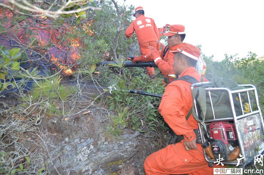 5月21日19時(shí),火勢(shì)蔓延至楚雄州祿豐縣勤豐鎮(zhèn)沙龍村境內(nèi)。當(dāng)晚9時(shí)30分,武警云南森林總隊(duì)普洱支隊(duì)駐楚雄州執(zhí)勤大隊(duì)45名官兵從楚雄市從發(fā),于22日凌晨0點(diǎn)40分到達(dá)現(xiàn)場(chǎng)。5月22日10時(shí)10分,45名參戰(zhàn)官兵轉(zhuǎn)移到鄭家溝火場(chǎng)西北線,采取以火攻火、打燒結(jié)合的戰(zhàn)術(shù),全力阻截西北火線。據(jù)了解,由于火場(chǎng)密灌叢生,山高坡陡,風(fēng)力達(dá)到5級(jí)以上,改線救火官兵無法直接撲打。