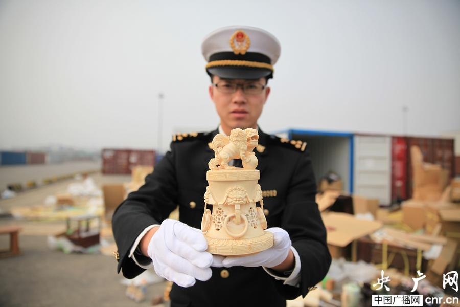 大連海關查獲象牙及象牙制品近38公斤(央廣網發(fā) 李文明攝)(央廣網記者 賈鐵生 攝)