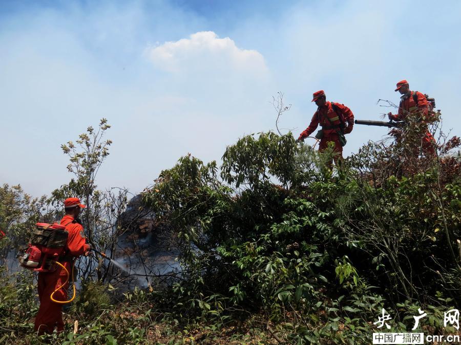 森林官兵反復清理煙點(央廣網(wǎng)發(fā) 嚴歡 攝)