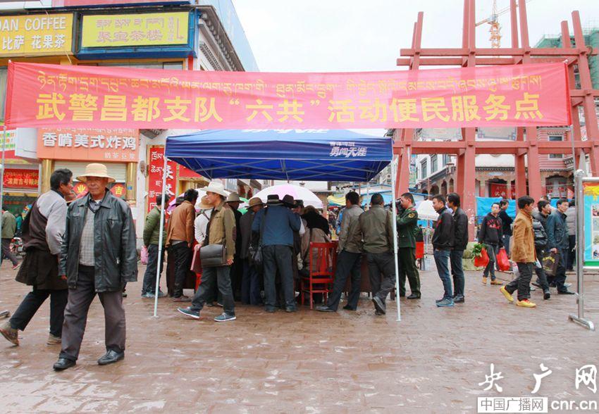 支隊(duì)官兵們設(shè)立便民服務(wù)點(diǎn)服務(wù)群眾(央廣網(wǎng)記者 普布次仁 攝)