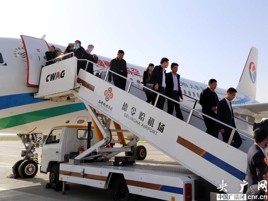 德令哈機場迎來首航乘客(央廣網記者 葛修遠 攝)