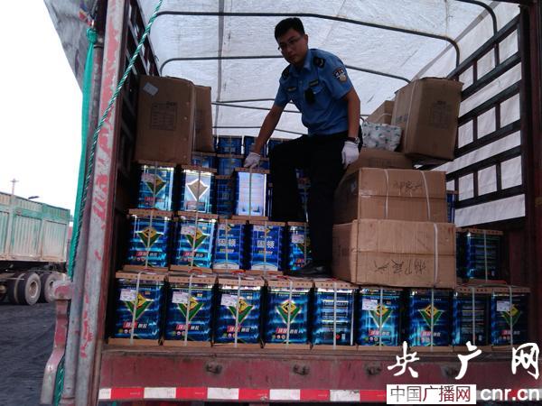 執(zhí)法人員對車輛進行檢查(央廣網(wǎng)記者 賈立梁 攝)