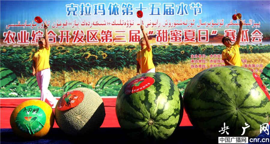 新疆克拉瑪依市舉辦第三屆“甜蜜夏日”賽瓜會(周建玲攝)(央廣網(wǎng)記者 張雷 攝)