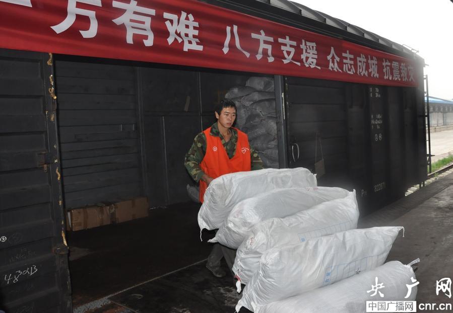 經(jīng)緊張搶卸,重約70噸的服裝包裹被順利卸下列車,成功轉(zhuǎn)運到開往災(zāi)區(qū)的大卡車上。車站方同時開辟綠色通道,為昭通民政局有關(guān)人員快速辦理貨物交接等相關(guān)工作。