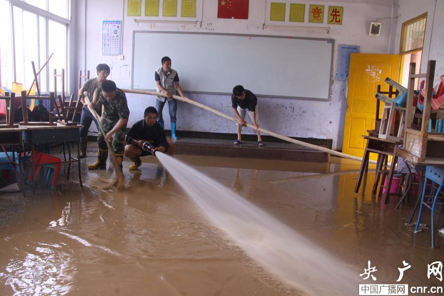 巫溪縣消防大隊官兵一大早就趕到了學校,消防官兵首先對學校食堂、教室、宿舍進行了清洗。記者看到,消防官兵沖刷過的地面比原來干凈了許多,消防官兵和學校工作人員正拿著掃把和水槍,在教室內(nèi)一邊沖洗一邊刷地,將教室一間一間的沖洗干凈。