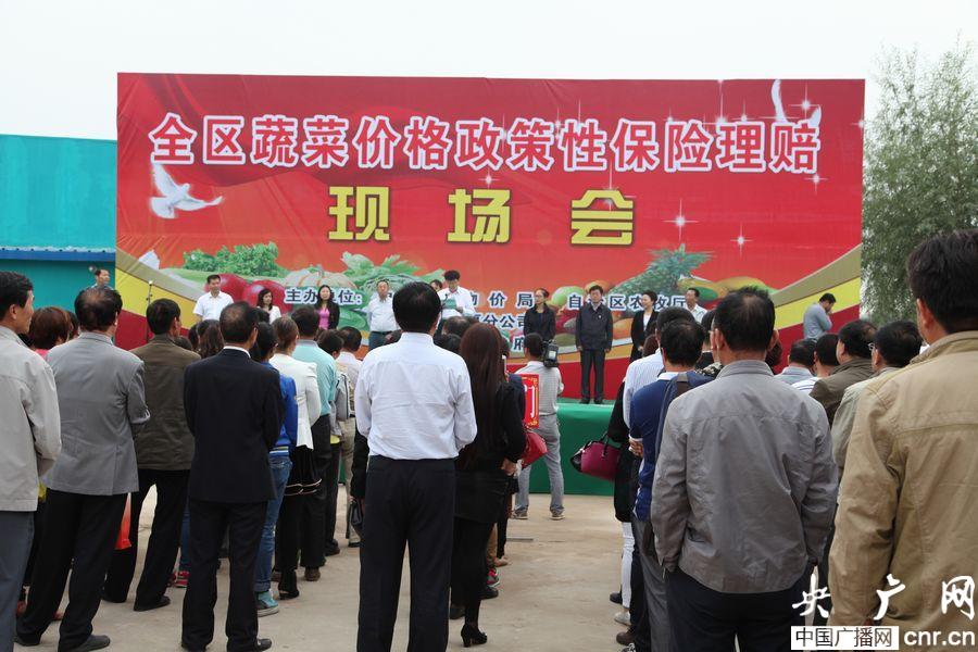 央廣網(wǎng)銀川9月12日消息 (記者 許新霞)今天上午,位于寧夏平羅縣城關(guān)鎮(zhèn)的雙贏蔬菜合作社門前空地上擠滿了四里八鄉(xiāng)的菜農(nóng),基本蔬菜價格政策性保險現(xiàn)場理賠活動吸引著許多鄉(xiāng)親來看個究竟。