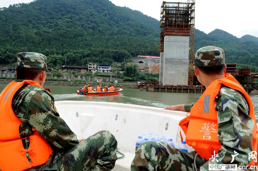 9月23日凌晨,福建省南平市西芹鎮(zhèn)一大橋工地,一艘漁船被河水沖翻,因河水湍急,岸上群眾無(wú)法實(shí)施救援,南平市地方政府向當(dāng)?shù)匚渚笤N渚=ǹ傟?duì)南平支隊(duì)迅速成立救援分隊(duì),攜帶沖鋒舟、救生裝置等搶險(xiǎn)器材趕赴現(xiàn)場(chǎng)進(jìn)行救援。到達(dá)事發(fā)現(xiàn)場(chǎng)后,該支隊(duì)官兵分為四個(gè)救援小組,兩組乘坐沖鋒舟在水面進(jìn)行搜救,兩組官兵沿河道15公里范圍內(nèi)進(jìn)行搜救。