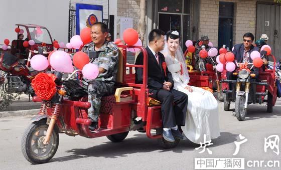 新疆和靜11對4個民族的新人乘三輪車辦特色婚禮