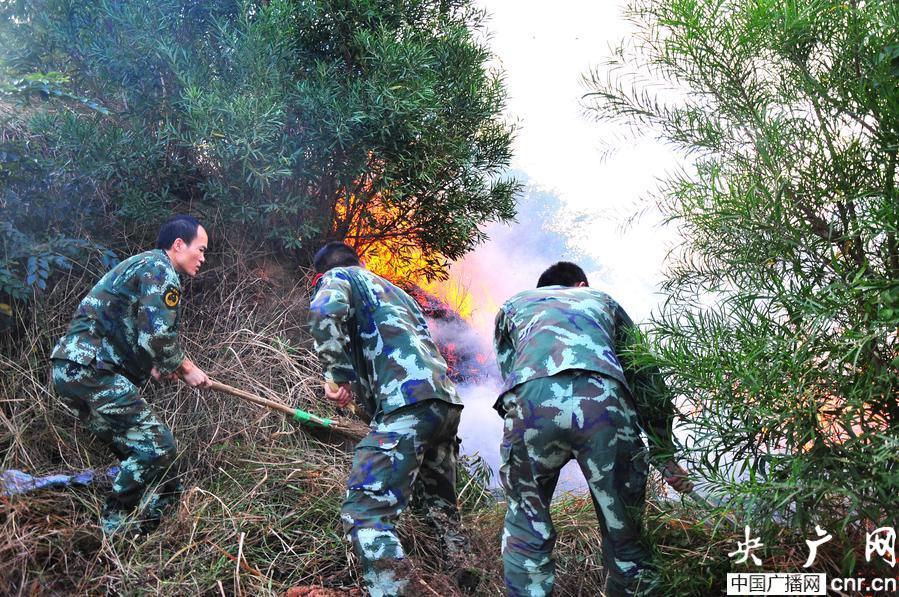 當(dāng)天6時(shí)50分許,該支隊(duì)駐福清部隊(duì)崗哨發(fā)現(xiàn)南城村北面山頭直冒黑煙,隱隱約約有火光出現(xiàn),便立即將警情向大隊(duì)指揮中心報(bào)告。接警后,該大隊(duì)立即組織20余名官兵攜帶滅火工具趕赴現(xiàn)場(chǎng)。