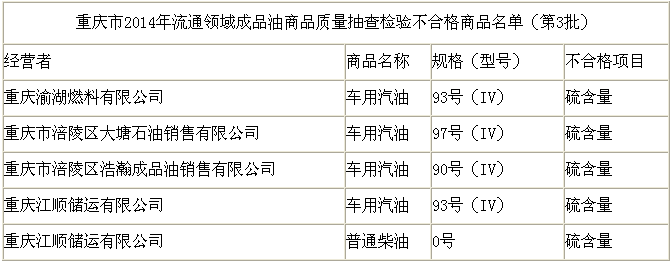 重慶市流通領(lǐng)域成品油商品質(zhì)量不合格商品名單公布