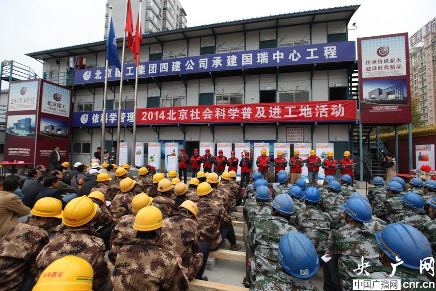 北京開展“2014社科普及周——社科進(jìn)工地”活動(dòng)(央廣網(wǎng)記者 李文蕊 攝)