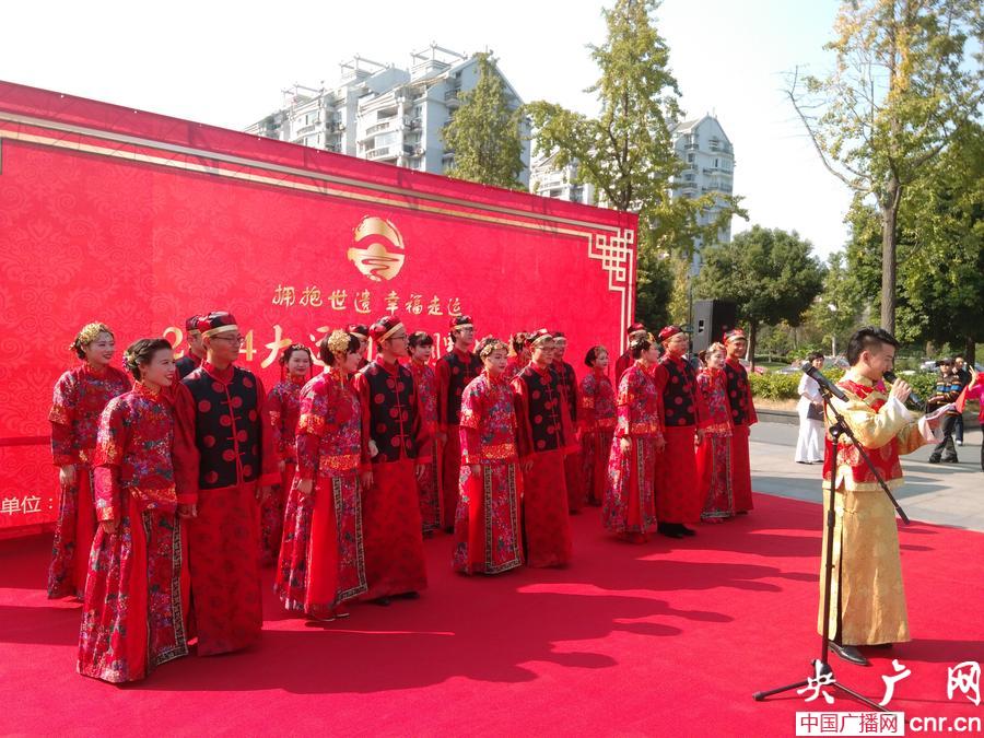 央廣網杭州10月25日消息(記者張國亮)今天下午,10對新人在杭州拱墅區(qū)在大運河旁邊的信義坊廣場和富義倉等遺址點舉行了“湖墅婚典”傳統式集體婚禮,以此來慶祝大運河今年申遺成功。大運河湖墅婚典承載著復活運河婚俗文化、促進產業(yè)發(fā)展,帶動旅游觀光業(yè)發(fā)展的重任。此次婚典采用中式婚禮,整個流程包括橋西待嫁、漕坊接親、信義盟誓、富義娶親、運河走運、香積祈禱、大兜喜宴等,每個流程都融入了大運河的元素。
