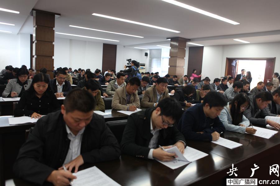 11日上午,江寧區(qū)東山街道4樓會議室,100名村干部參加廉政知識集中測試。(央廣網(wǎng)記者 景明 攝)