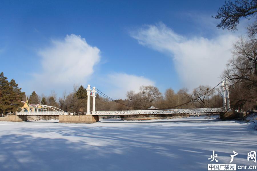 圖為冬季吊橋美景(央廣網(wǎng)發(fā) 紀(jì)明國(guó) 攝)