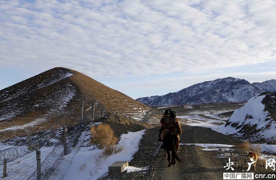 11月底的塔克什肯已是銀裝素裹,最低氣溫已達(dá)到零下35度。有的邊境地區(qū)已被大雪覆蓋,道路不通。為加強(qiáng)邊邊境管控,防止發(fā)生涉外問題,塔克什肯邊防連組織巡邏分隊乘馬對中蒙邊境實施巡邏。官兵們在邊境線上時而騎馬穿越蘆葦叢,時而牽馬通過被雪覆蓋的山溝,還不時停下來定點觀察,構(gòu)成一道靚麗的風(fēng)景線。