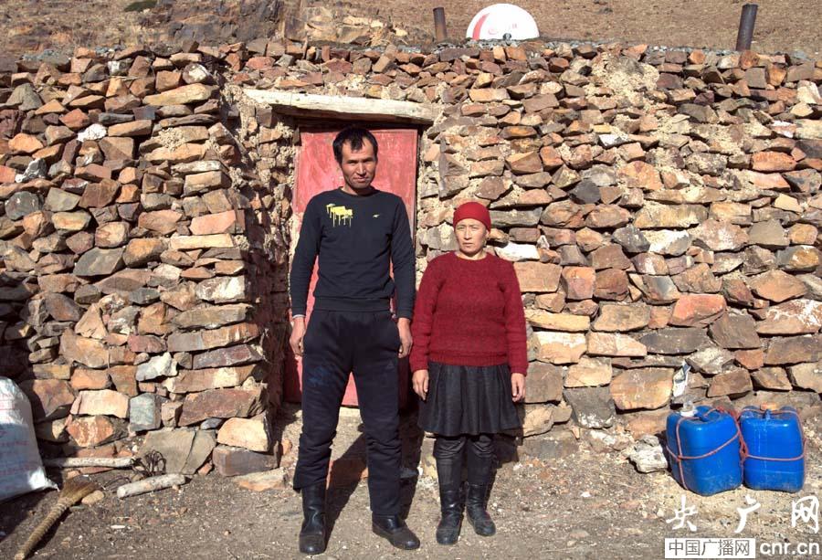 牧民烏馬爾·賽比和他的妻子在冬窩子(央廣網(wǎng)記者 張雷 攝)