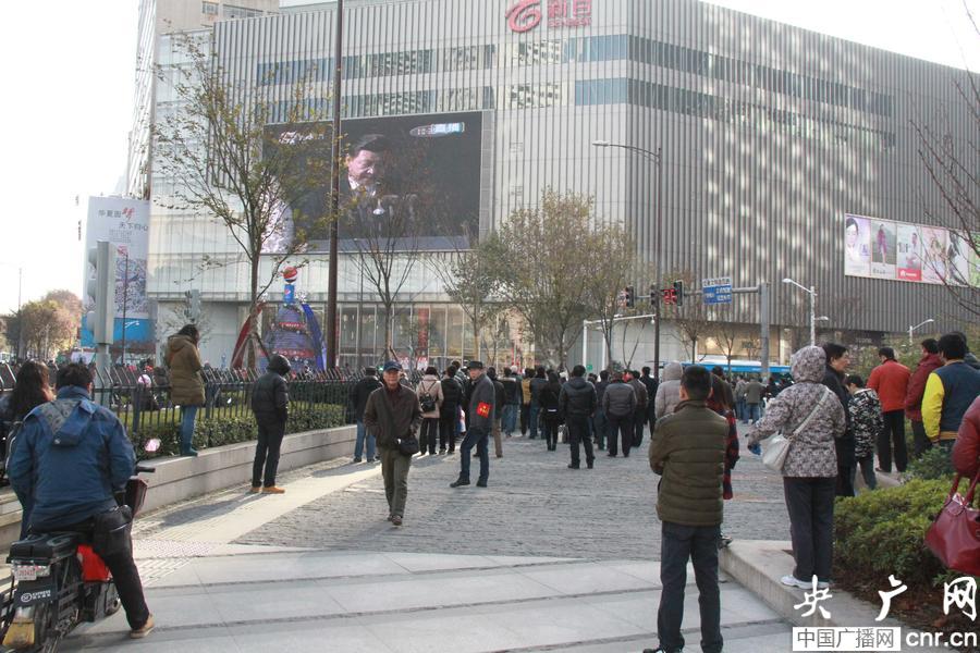 主會場外,南京北極閣、中山碼頭、燕子磯、普德寺等17處南京大屠殺叢葬地也同時舉行了悼念活動。10:00,南京全城鳴響防空警報,主城區(qū)范圍內(nèi)道路上行駛的機(jī)動車停駛鳴笛致哀1分鐘,火車、船舶同時鳴笛致哀,道路上的行人和公共場所的所有人員同時就地默哀1分鐘。(央廣網(wǎng)記者 景明 攝)