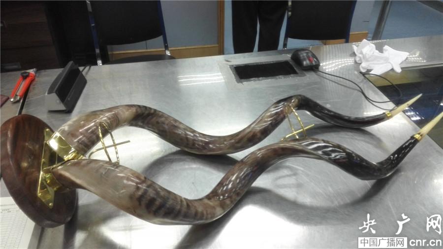 海關(guān)查獲的旋角羚羊(央廣網(wǎng)記者 鄭柱子 攝)