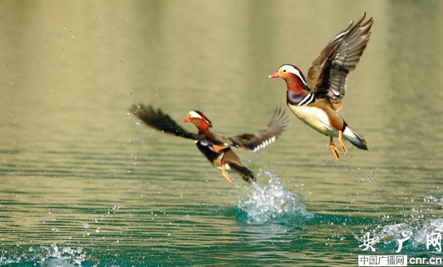 央廣網(wǎng)銅仁1月2日消息(記者王珩 孟海)元旦期間,在銅仁市碧江區(qū),天氣逐漸轉(zhuǎn)冷,在國家濕地公園——天生橋大峽谷里,成百上千的野鴛鴦,成雙成對在快樂的覓食、嬉水、呈現(xiàn)出一幅自然和諧的畫卷,讓游人驚喜不己,成為冬日新年一景。