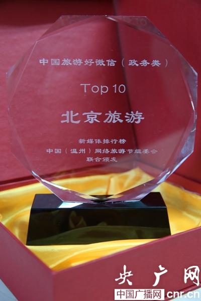 北京旅游官方微信獲“中國(guó)旅游好微信”TOP10獎(jiǎng)項(xiàng) 北京市旅游委供圖(央廣網(wǎng)記者 李文蕊 攝)