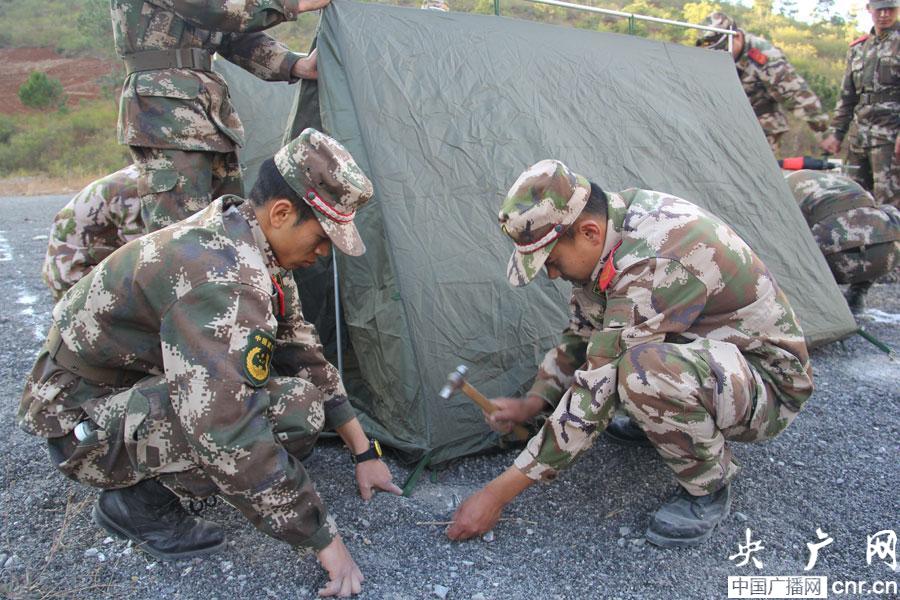 央廣網(wǎng)保山1月7日消息(記者李健飛 通訊員張勇 徐濤)“戰(zhàn)場打不贏,一切等于零,武藝練不精,不是合格兵……”響亮的戰(zhàn)歌久久回蕩在高黎貢山密林深處。武警云南省森林總隊保山市支隊把部隊拉到深山密林開展“野外化、模擬化”訓(xùn)練,從實戰(zhàn)需要出發(fā),從難從嚴(yán)訓(xùn)練,著重錘煉部隊“走、打、吃、住、行”等實戰(zhàn)能力。