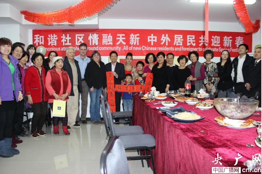 央廣網(wǎng)北京2月9日消息(記者李單 通訊員姚蕾)北京空港天竺新新家園社區(qū)會(huì)所昨天格外熱鬧。為了融洽中外鄰里關(guān)系,讓外國(guó)人感受中國(guó)傳統(tǒng)節(jié)日,在異國(guó)他鄉(xiāng)不再孤單寂寞,天竺新新家園社區(qū)舉辦了“情融天新 中外居民過(guò)大年”活動(dòng),此次活動(dòng)邀請(qǐng)了中國(guó)、德國(guó)、美國(guó)、越南等40余居民參加。