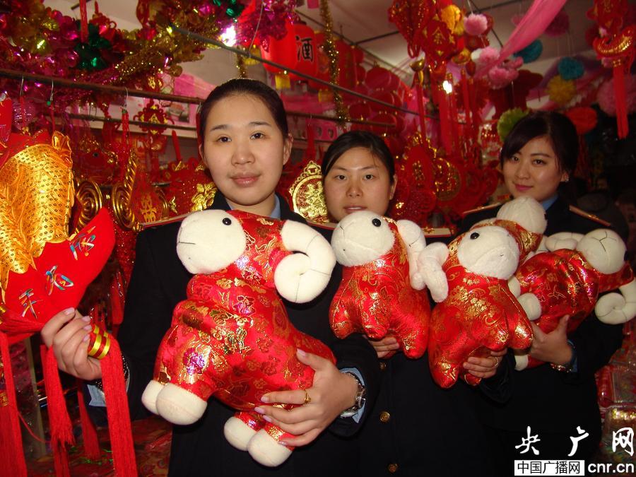 央廣網(wǎng)長(zhǎng)沙2月9日消息(記者鄧文輝 通訊員孫豪 薛題泰攝)羊年春節(jié)近,送飾品羊等忙。2月9日,湖南懷化火車站休班的女客運(yùn)員,正在為節(jié)日當(dāng)班的農(nóng)民工購(gòu)買飾品綿羊等年貨。佳節(jié)近,懷化站有的職工自發(fā),為過年當(dāng)班的農(nóng)民工送飾品、年畫、燈籠、春聯(lián)、窗花、水餃等,也為車站“為農(nóng)民工春節(jié)送溫暖”活動(dòng),增添喜慶、溫暖、濃濃“年味”。