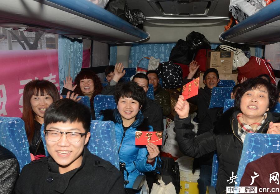 大紅門商戶乘免費(fèi)大巴千里還鄉(xiāng)過(guò)年 楊鐵梅 劉連良攝