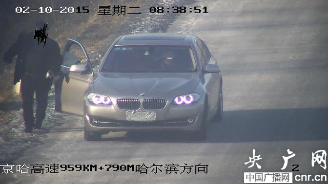 吉林高速駕駛員停車遮擋號(hào)牌 ,監(jiān)控錄像拍下全程(央廣網(wǎng)記者 于中濤 攝)