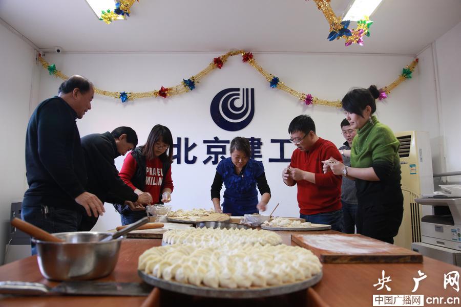 北京組織建筑工人包“溫暖牌”水餃過小年 (央廣網(wǎng)記者 李文蕊 攝)