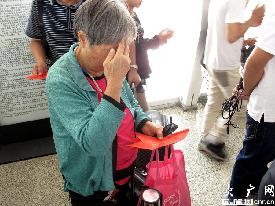 旅客正在猜拿到的燈謎(央廣網(wǎng)發(fā) 吳媚苗 攝)