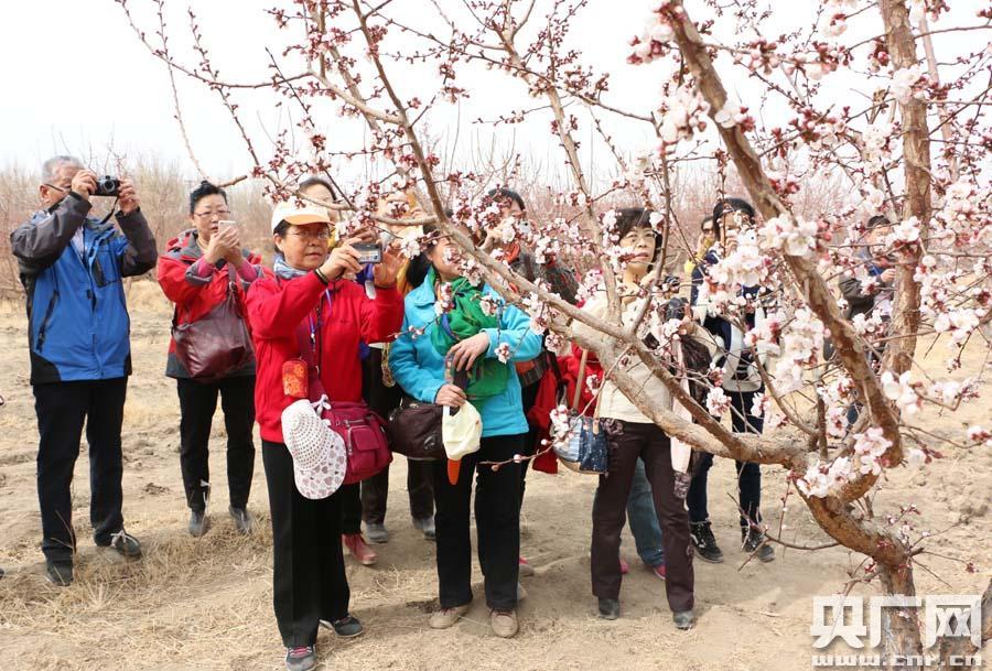 盛開的杏花吸引游客拍照(央廣網(wǎng)記者 吳卓勝 攝)