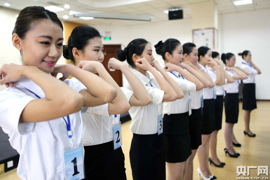 復試階段主要對應聘者外語水平、表達能力、綜合形象進行進一步考察,外語標準、具親和力的應聘者更易獲得評委青睞。應聘者進入考場前,需挽起袖口露出小臂,女性應聘者要求著裙裝。工作人員介紹,復試中,除了考察外語水平,還要檢查是否有明顯疤痕、明顯“O型腿”等。由于空姐外在形象是帶給旅客的第一感受,有紋身的應聘者自然難以通過復試。在現(xiàn)場,1995年出生的小張就因為手上有明顯紋身,主動放棄了復試。