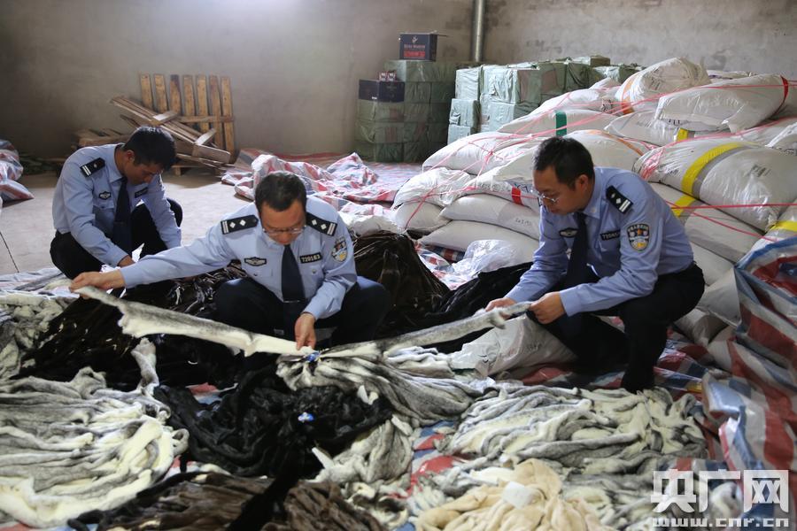 圖為:南寧海關(guān)查獲的涉嫌走私貂皮 劉永華攝