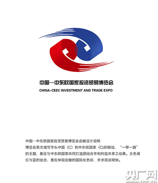 中東歐博覽會(huì)會(huì)徽為英文縮寫字母中國(C)和中東歐國家(C)的結(jié)合,象征中國與中東歐國家通過合辦投資貿(mào)易博覽會(huì),共同建設(shè)“一帶一路”,追求團(tuán)結(jié)合作和利益共享之成果。主色調(diào)采用紅色和藍(lán)色,頗具國際色彩,并求簡潔明快。