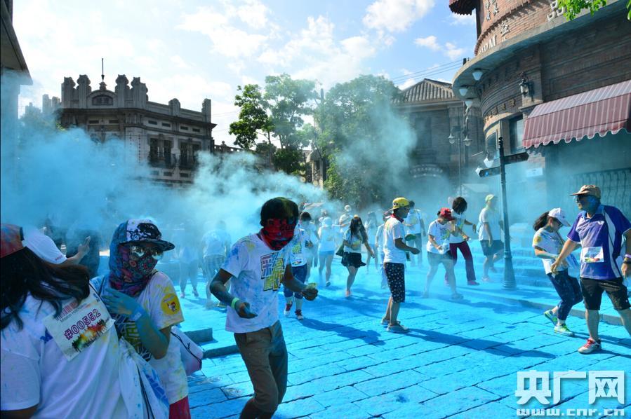 當(dāng)天上午9點(diǎn),在海口觀瀾湖華誼馮小剛電影公社影人星光大道路口正式開跑,同時(shí)在電影公社“1942街”鐘樓廣場(chǎng)、大型攝影棚拍攝區(qū)、觀瀾湖、蘭桂坊、?谑V湖、觀瀾湖火山巖礦溫泉500米龍脊長廊處都設(shè)有人工噴彩點(diǎn),讓參與者除了跑出夏日激情,更能感受到觀瀾湖的魅力與活力。特別在電影公社“1942街”鐘樓廣場(chǎng)設(shè)有“藍(lán)色”人工噴彩,一條條長龍似的青年隊(duì)伍跑過狂噴的彩粉時(shí),頓感頭頂上的藍(lán)天和地上變藍(lán)的青石板路已經(jīng)連成一線,傻傻分不清楚,美得掉渣。