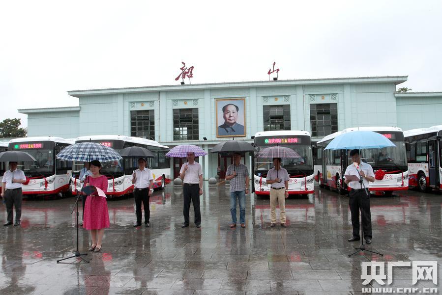 6月8日,韶山迎來全省首條純電動城鄉(xiāng)公交線路1、2路的正式開通運(yùn)營,圖為開通儀式現(xiàn)場(央廣網(wǎng)發(fā) 賀湘云 攝)