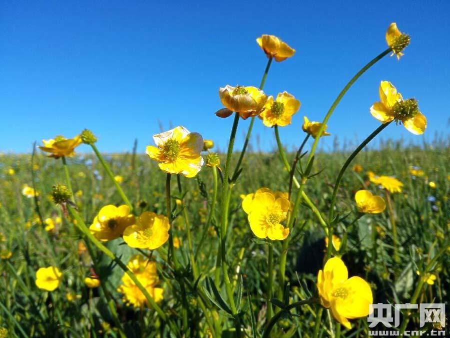 黃艷艷的山花點(diǎn)綴喀拉峻草原