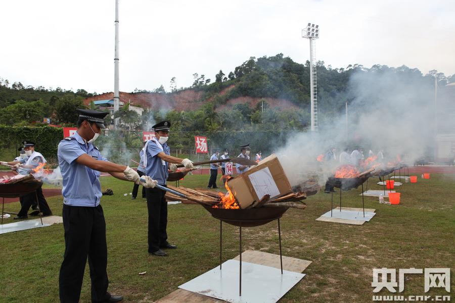警方現(xiàn)場銷毀海洛因、冰毒等毒品(白董 攝)