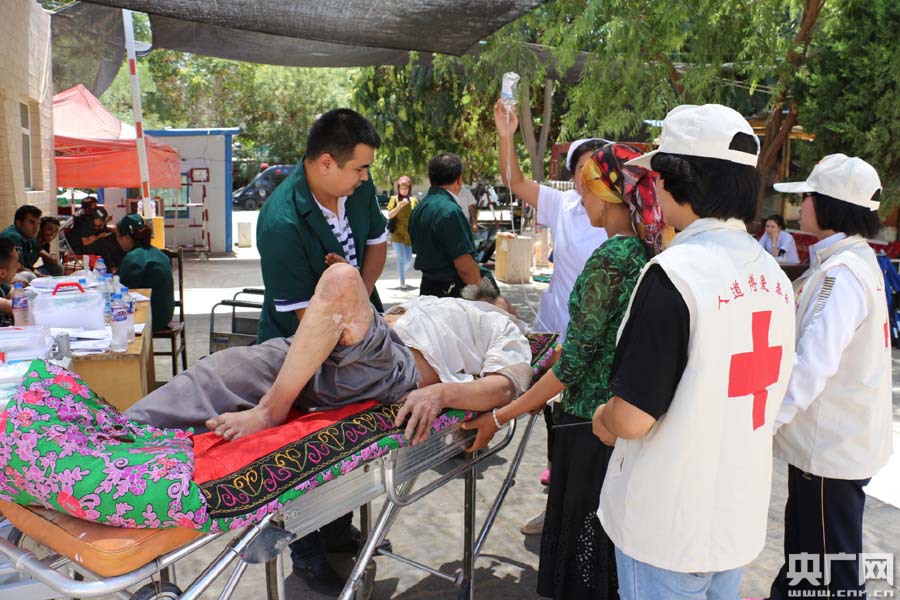 皮山縣一中是受災(zāi)群眾的安置點(diǎn),這里除搭建居住帳篷外還提供醫(yī)療救助,解放軍十八醫(yī)院心內(nèi)科醫(yī)生楊兵介紹:“我們目前開(kāi)展是8張床位,根據(jù)病人的情況還可以增加,比如輕一點(diǎn)的病人不需要留觀的,我們簡(jiǎn)單處理過(guò)后再把他們分流,但是特別重的我們就轉(zhuǎn)上級(jí)醫(yī)院進(jìn)行進(jìn)一步治療!